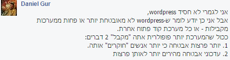 כמו הרבה פוסטים אחרים כאן, הכול התחיל מדיון בפייסבוק שערכתי אל מול מישהו, אותו מישהו יכל "להשבע" ש-Wordpress היא מערכת לא מאובטחת, ובאופן חד משמעי היא יותר מסוכנת ממערכות אחרת.